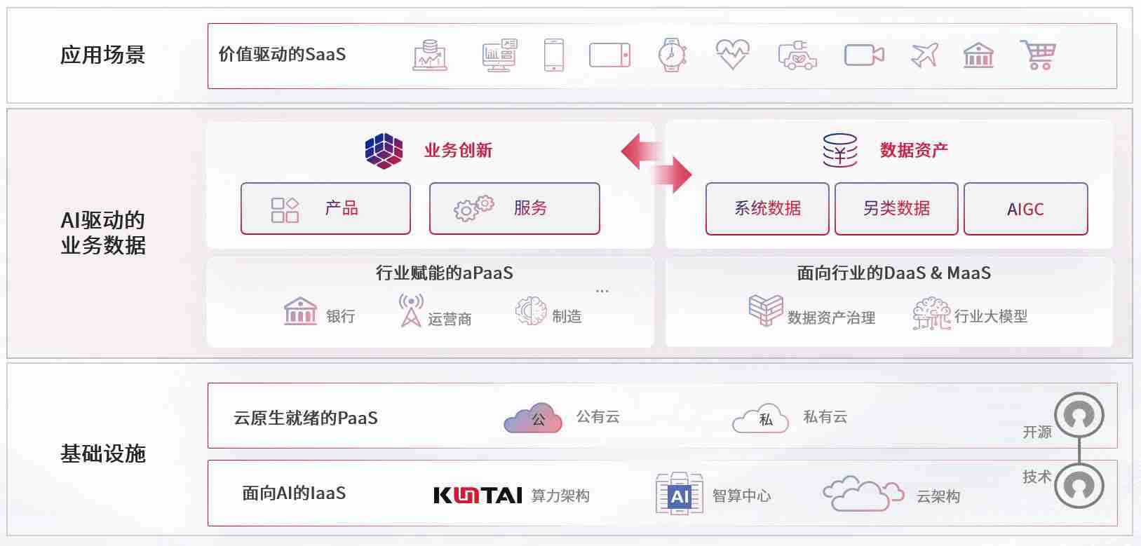 数字时代,,围绕企业数字化转型的关键要素,,,NO钱包数码开创性的提出数云融合战略和技术体系框架,,着力在云原生、、、数字原生、、、AI原生和信创产业上架构产品和服务能力,,为处在不同数字化转型阶段的快消零售、、、、汽车、、金融、、、、医疗、、政企、、、教育、、、运营商等行业客户提供泛在的敏捷IT能力和融合的数据驱动能力,,构建跨界融合创新的数字业务场景和新业务模式,,助力企业级客户建立面向未来的核心能力和竞争优势,,,全面推动社会的数字化、、智能化转型升级。。